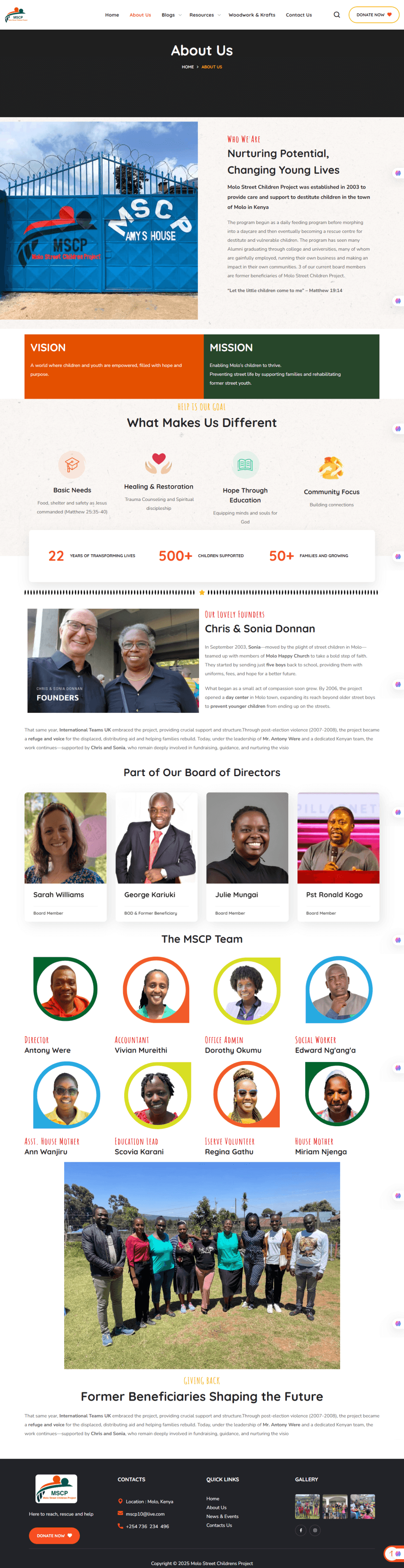 Pandiz Tech built the complete digital presence for the Molo Street Children Programme (MSCP) Foundation — a Kenya-based nonprofit dedicated to rescuing, rehabilitating, and reintegrating street children in Molo, Nakuru County.
