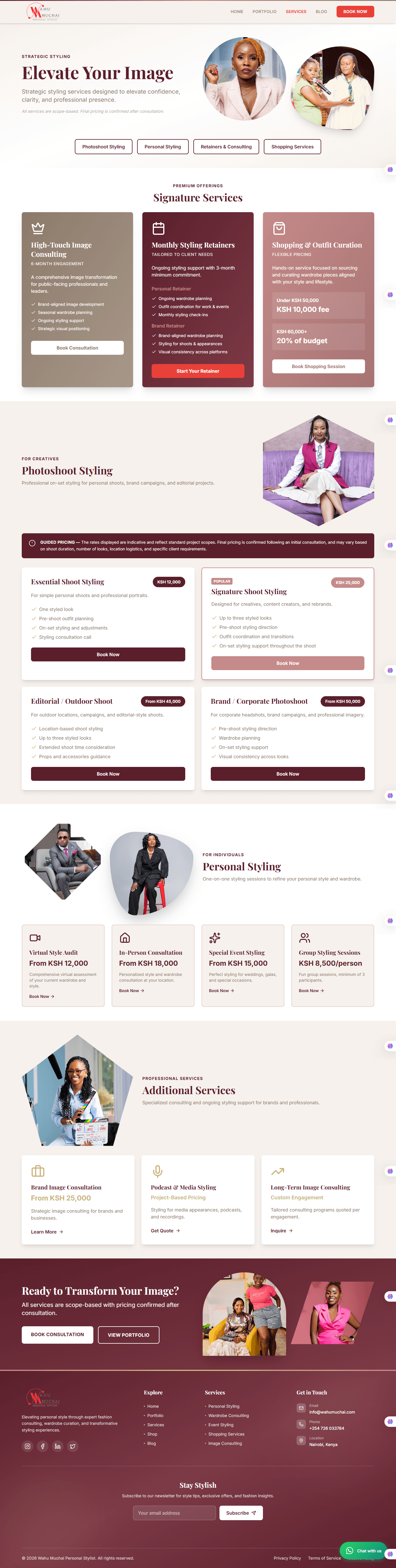 Pandiz Tech built the complete digital home for Wahu Muchai — one of Nairobi's leading personal stylists. The challenge was representing a luxury personal brand online with elegance and function in equal measure.